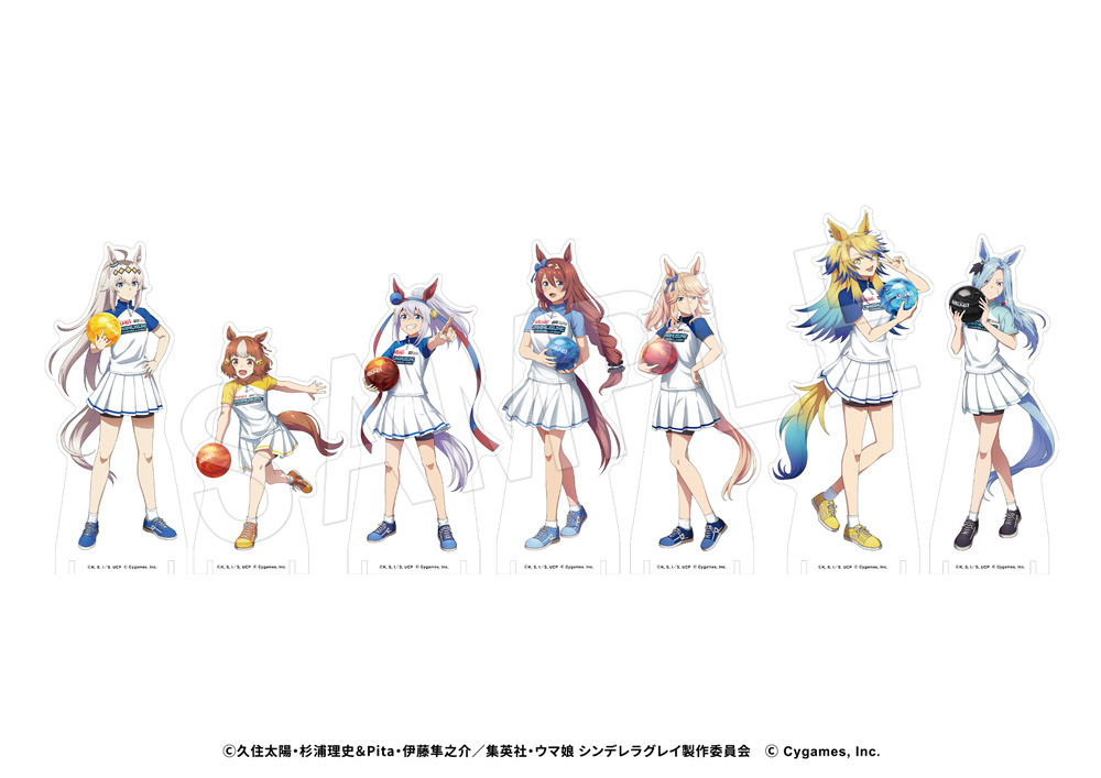 中外鉱業コンテンツ部が企画・製作・販売を担当する本コラボでは、オグリキャップ、ベルノライト、タマモクロス、スーパークリーク、ゴールドシチー、オベイユアマスター、エラズリープライドの計7キャラクターがボウリングを楽しむ描き下ろしイラストを使用したグッズがラインナップされる。