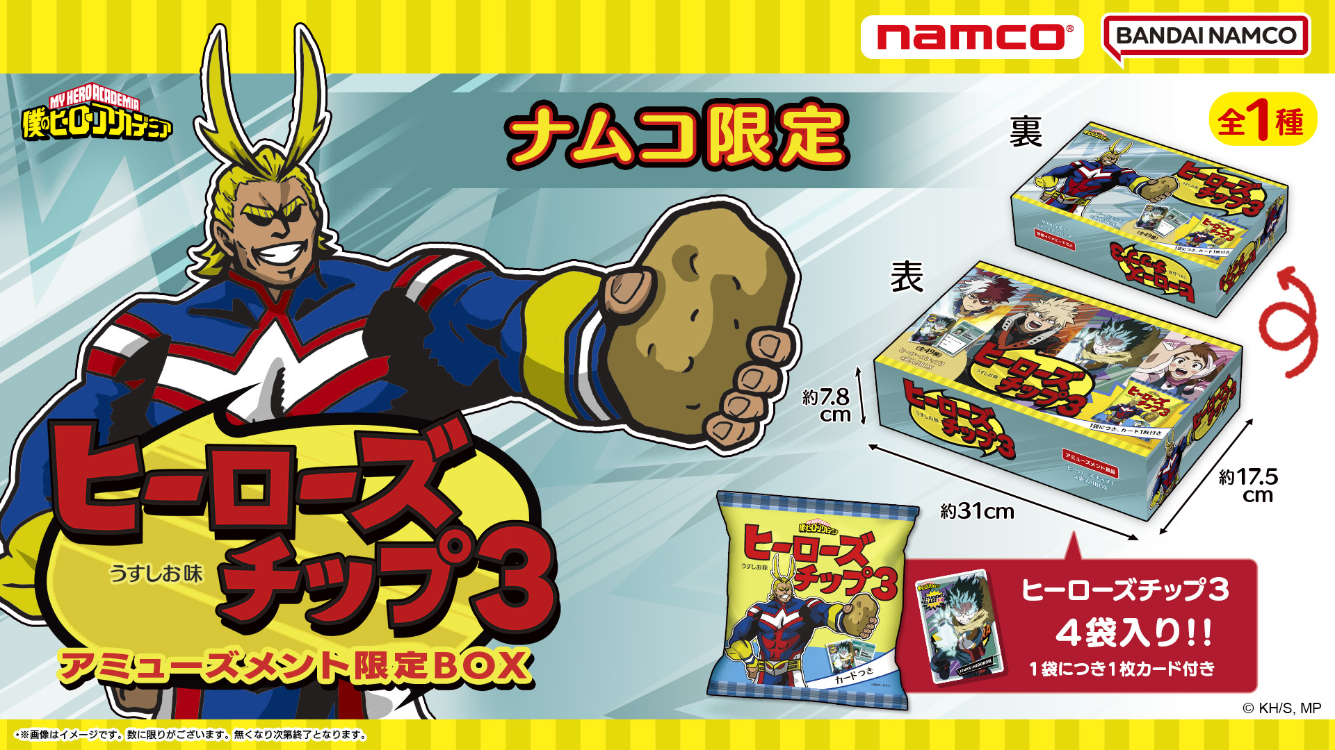 『ヒーローズチップ3 うすしお味』は、ナムコの店舗およびナムコオンラインクレーンでも2025年12月2日(火)より順次登場予定