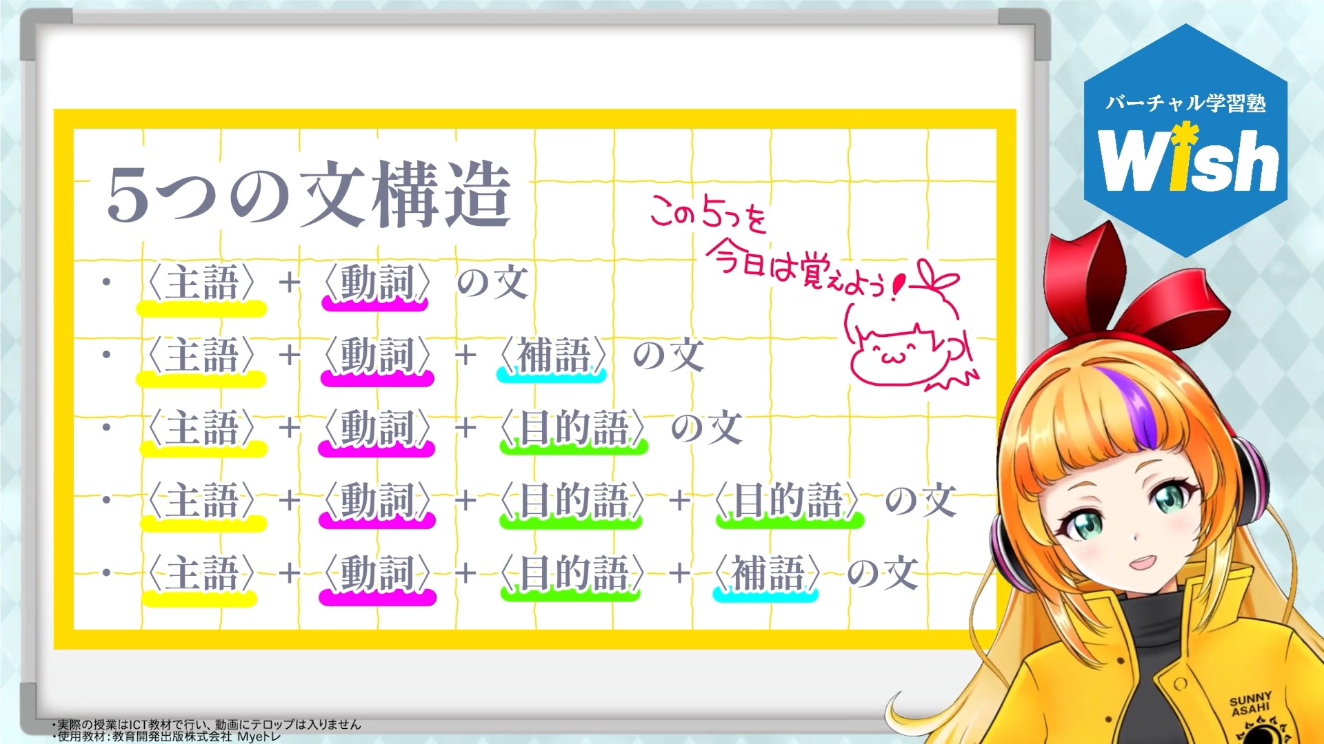 Wish Highでは、数学・英語・古典・物理・化学・生物・世界史・日本史・地理といった主要教科を、個性豊かなVTuber講師陣が担当する。