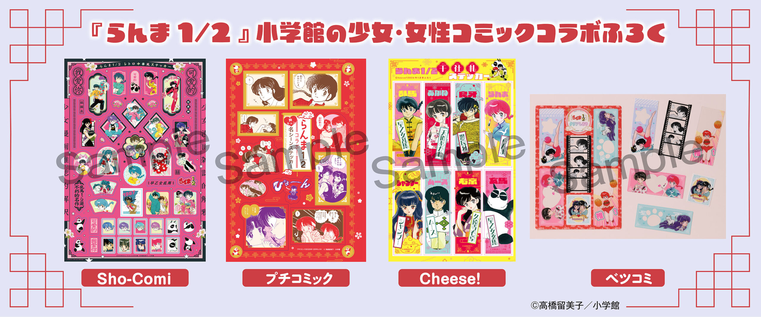 TVアニメ『らんま1/2』第2期の放送を記念し、小学館の少女・女性コミック4誌(「Sho-Comi」「プチコミック」「Cheese!」「ベツコミ」)にて、『らんま1/2』(高橋留美子)のスペシャルコラボ付録が登場します。