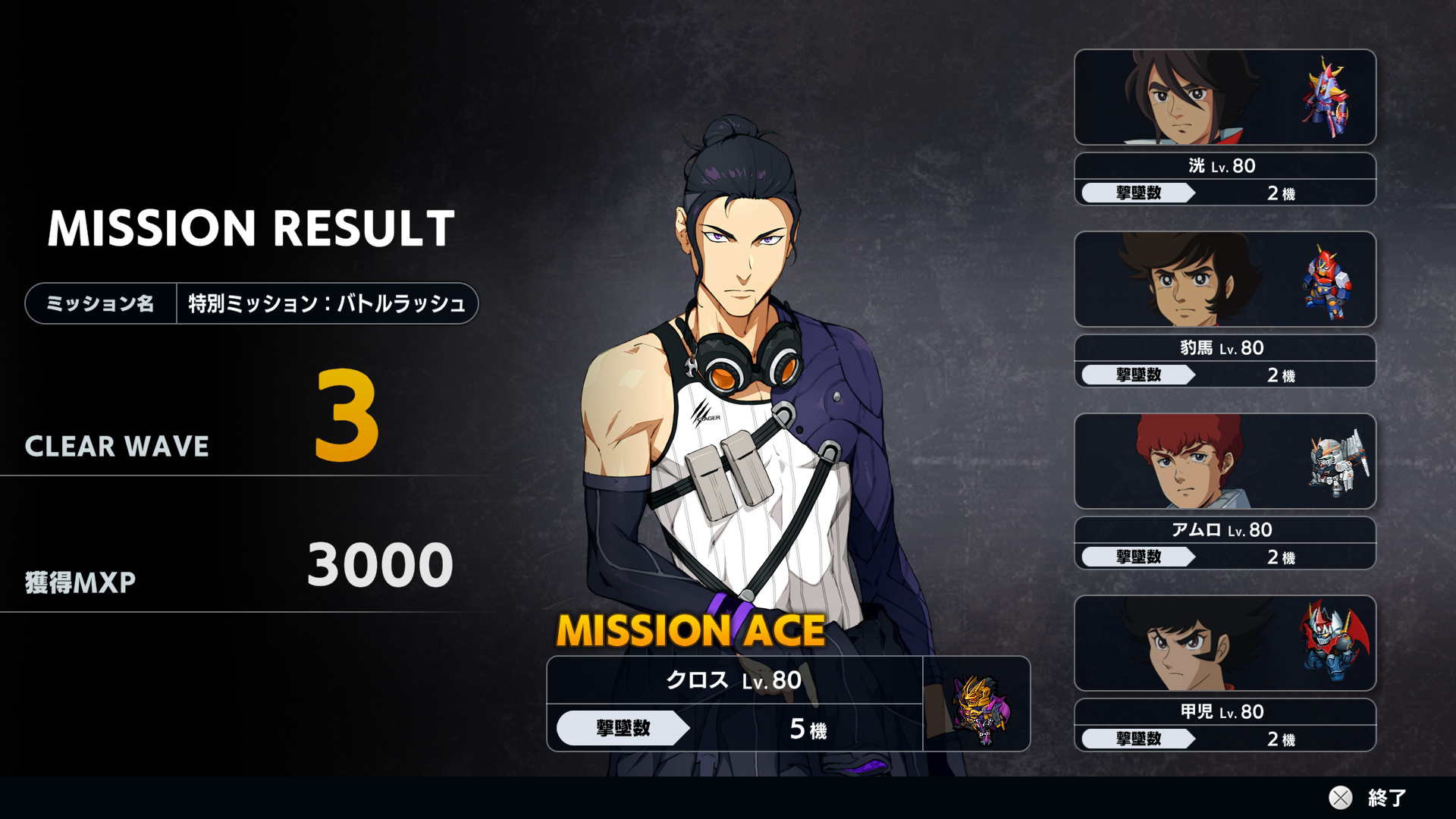 Chapter6に、少数のユニットで次々と現れる敵を倒していく高難度の特別ミッション「バトルラッシュ」が追加されます。 全10WAVEで構成され、初回クリア時には強力な強化パーツやCREDITが入手できるほか、クリアしたWAVEに応じて大量のMXPも獲得可能! 育成したお気に入りの機体で、腕試しとMXP稼ぎに挑戦しましょう! ※このミッションでは難易度設定やAUTOバトルは使用不可となります。