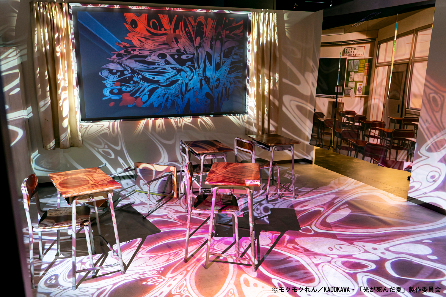 「希望ヶ山高校の教室」 希望ヶ山高校の教室を再現! 教室内の印象的なシーンを、映像を通して体感できるそうです。