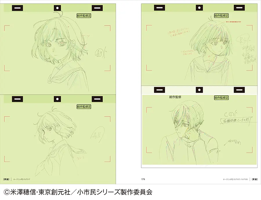 さらに、本編やオープニングの絵コンテ(抜粋)、総作画監督による作監修正も収録。特にヒロインである小佐内さんの原画がたっぷりと載っているとのことで、ファンにとっては見逃せないポイントです。巻末には遠藤一樹プロデューサーへのインタビューも掲載されており、メイキング秘話やスタッフの活躍について語られています。