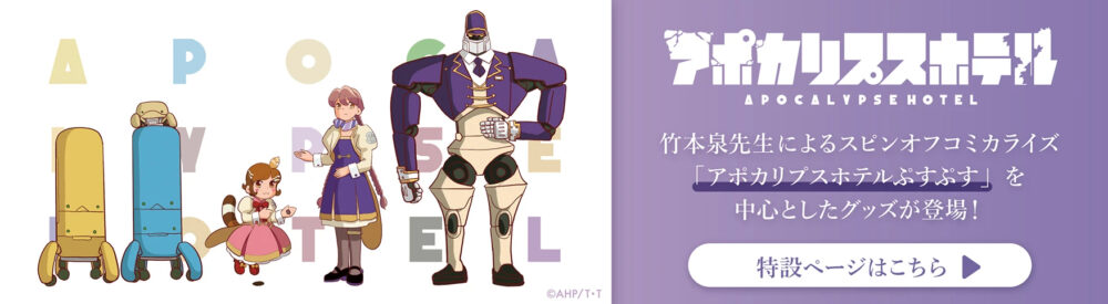 また、関連書籍としてコミックス『アポカリプスホテルかりかり』や、詳細な設定が詰まった『図説 アポカリプスホテル運営記録』の情報も公開されています。 さらに、竹書房STOREでは前作『アポカリプスホテル ぷすぷす』のグッズや、竹本泉先生描き下ろしのグッズも取り扱っています。コミックマーケットC107で発売予定の商品もあるため、ファンの方はグッズ情報も見逃せません。