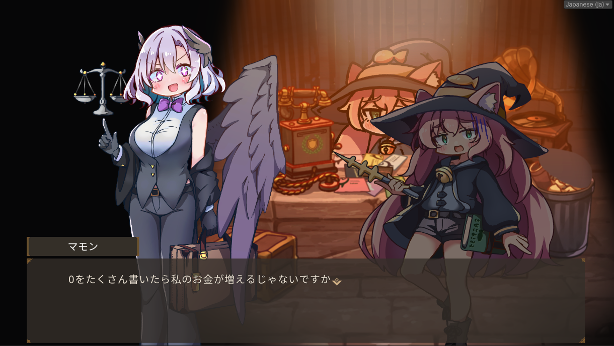 特に「ベルフェゴール」は、本プレスリリースで初公開となる新規キャラクターです。開発後援企業としては未実装ですが、ミーティングパートでその怠惰かつ狡猾な人柄を確認できます。主人公モモコへの魔法指南を命じられた彼が、モモコと共謀してサボタージュを画策する様子が描かれます。