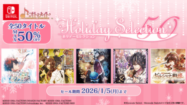 オトメイトの「Holiday Selection 50」が本日より開催。オランピアソワレや華ヤカ哉、我ガ一族など人気50作品が最大50%OFFに。初セール作品も多数登場。年末年始はお得に乙女ゲームを楽しもう。