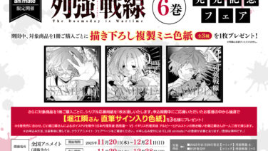 『列強戦線』6巻が11/20発売!アニメイトで特典「描き下ろしミニ色紙」が貰える。抽選で堀江瞬さん直筆サイン色紙も。アクスタ付きセットも。今すぐチェック。